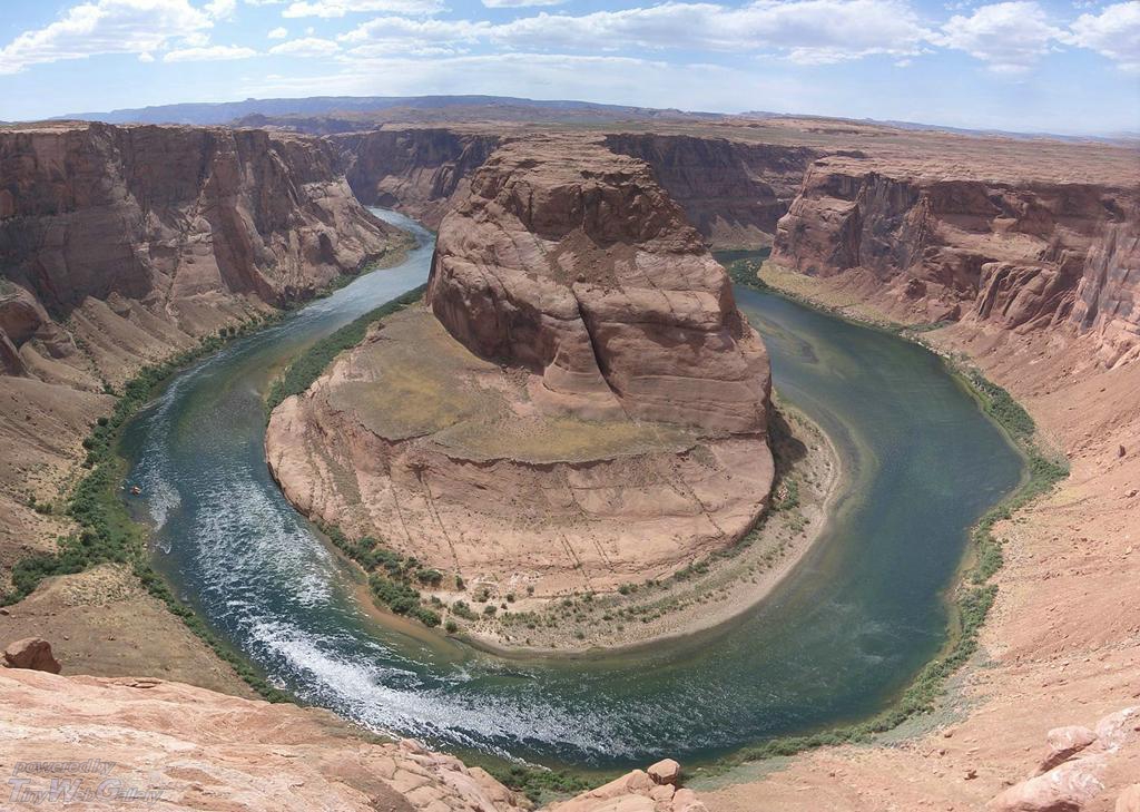 Dieser Platz ist ein paar Kilometer südlich von Page, Arizona. Es ist der Colorado bevor er in den Grand Canyon fließt. Dieses Bild besteht übrigens aus 12 Einzelbidern die zu einem gerendert wurden. |